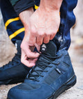 Stabilna, kožna cipela visokog profila koja drži zglob čvrsto i štiti stopalo na različitim terenima.